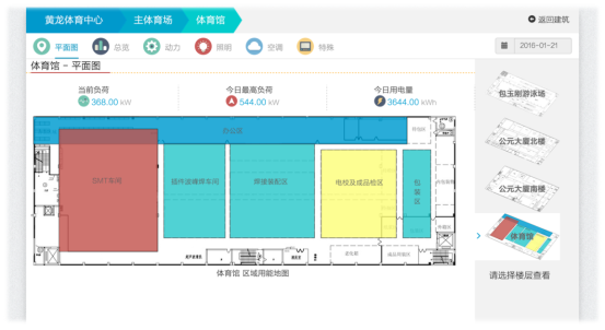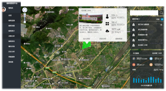 系統(tǒng)支持GIS地圖監(jiān)測功能,以電子地圖中的地圖模式會顯示平臺地理信息界面,合理準確的闡述監(jiān)測區(qū)各個樓宇的地理分布位置,并給出文字圖形加以標注。見界面包含樓宇實景圖、樓宇簡要、樓宇系統(tǒng)功能等。同時,系統(tǒng)為各建筑、樓層、設備、回路提供了詳細的能耗地圖,通過此畫面,操作員可以清楚、詳細地查看各建筑、樓層、分區(qū)等的相關用電數(shù)據(jù),方便地進行設備的控制操作,包括全遙測數(shù)據(jù)、回路狀態(tài)、報警和故障信號的查看、諧波數(shù)據(jù)分析、遠程控制操作等。